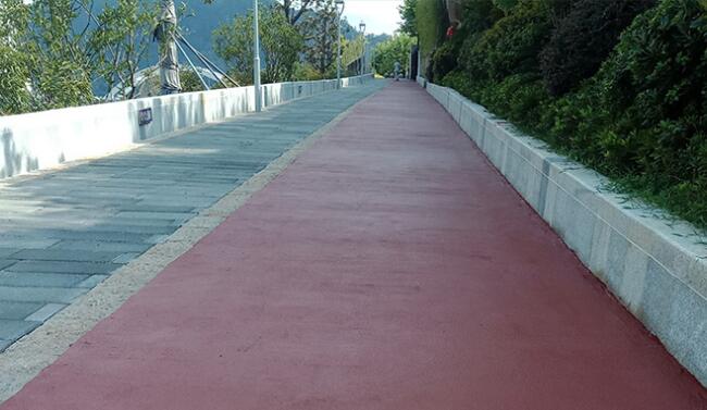 彩色防滑路面黏合劑是一種雙組分改性樹脂,其高分子特性,使其具有極高的黏合性、抗壓強度和柔韌性,能夠將天然抗磨石料牢固地粘結在路表面。